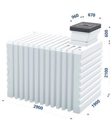 Izmēri: garums – 2.9 m, platums – 1.9 m, augstums – 2,7 m